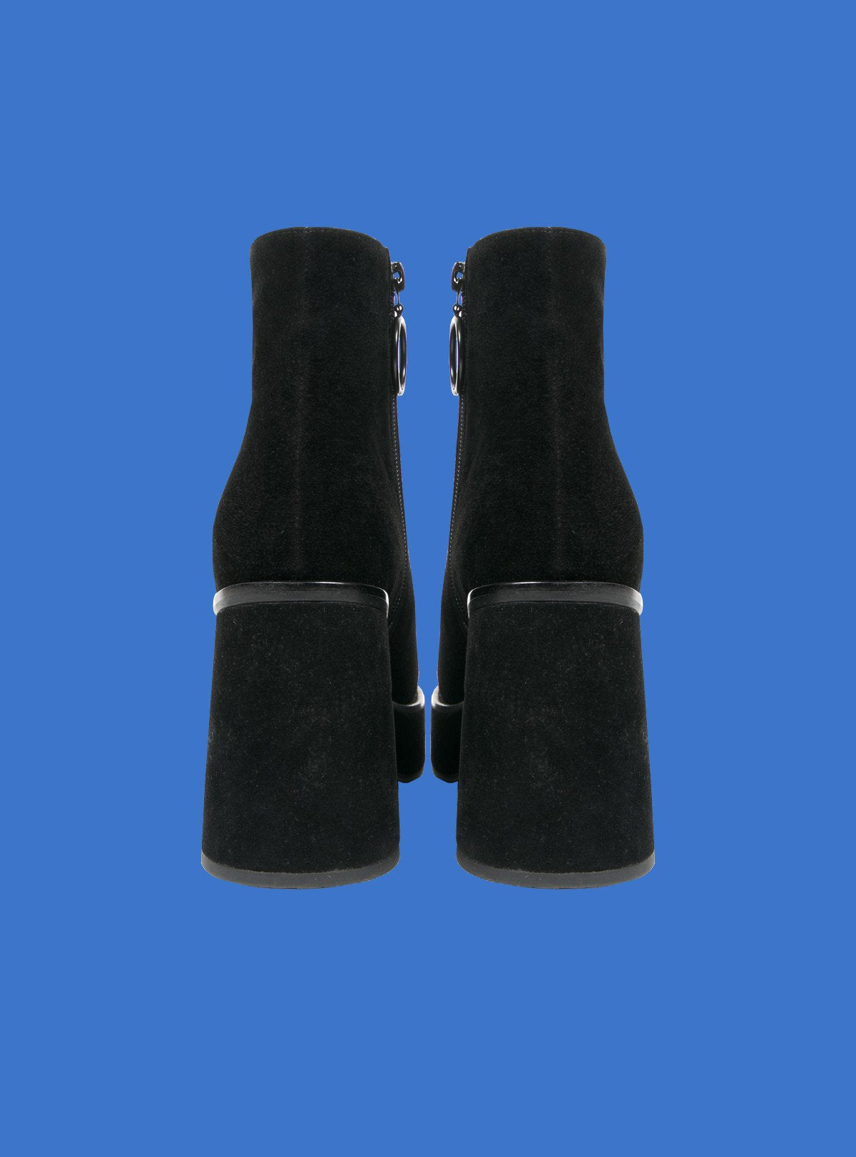 The Milla boot is a suede ankle boot with tonal matte black hardware and ring zipper pull on the inside. 1" platform in the front to 4" heel in back. Fit is true to size.